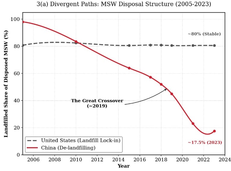 Rising AI electricity demand and persistent landfill methane emissions constitute coupled constraints on U.S. digital infrastructure and decarbonization. While China has achieved a rapid 'de-landfilling' transition through centralized coordination, the U.S. remains structurally 'locked in' to landfilling due to fragmented governance and carbon accounting incentives. This paper proposes a modular legacy landfill remediation framework to address these dual challenges within U.S. institutional constraints. By treating legacy sites as stock resources, the proposed system integrates excavation, screening, and behind-the-meter combined heat and power (CHP) to transform environmental liabilities into resilience assets. A system analysis of a representative AI corridor demonstrates that such modules can mitigate site-level methane by 60-70% and recover urban land, while supplying approximately 20 MW of firm, islandable power. Although contributing only approximately 5% of a hyperscale data center's bulk load, it provides critical microgrid resilience and black-start capability. We conclude that remediation-oriented waste-to-energy should be valued not as a substitute for bulk renewables, but as a strategic control volume for buffering critical loads against grid volatility while resolving long-term environmental liabilities.